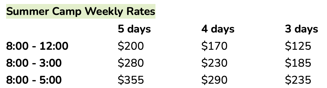 During the summer months, we offer summer camp! It looks little different than our normal programming, as we spend a lot of time outside. We also have special projects and themes to celebrate the break from our normal school schedule!
